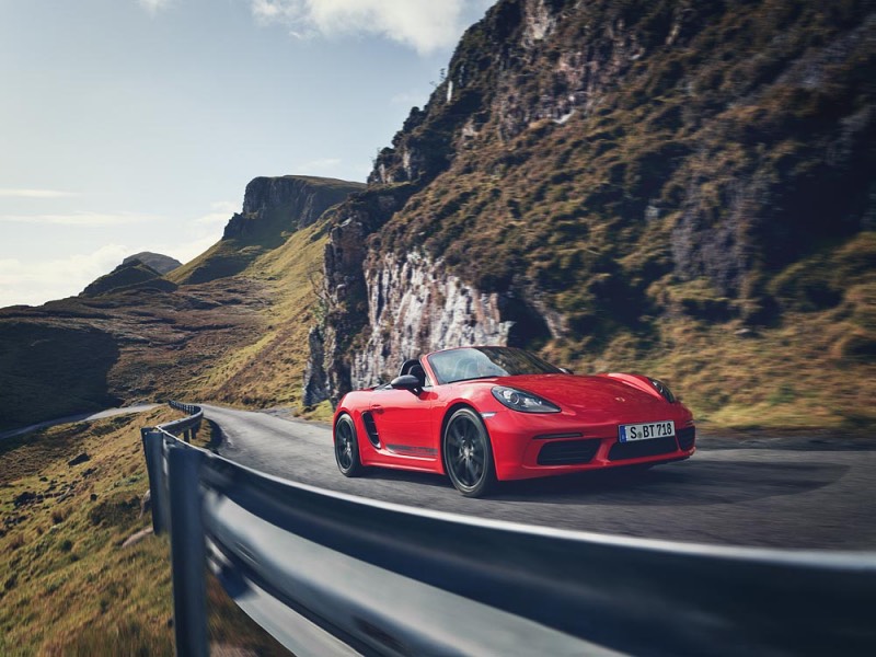 Porsche přenáší puristický koncept modelu 911 T z roku 1968 do produktové řady svých dvoumístných sportovních vozů. Výsledkem je 718 T. Nová verze modelů Boxster a Cayman kombinuje přeplňovaný čtyřválcový motor „boxer“ o výkonu 220 kW (300 k) s mimořádně emocionálními zážitky z řízení vozu Porsche.