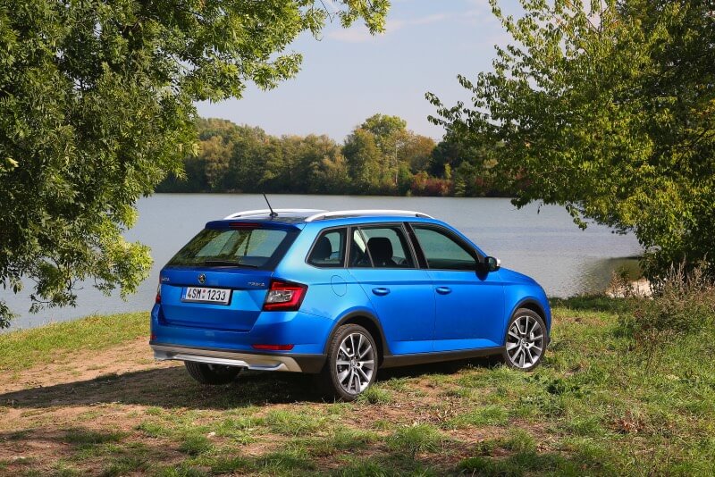 Dynamický vzhled přepracované masky chladiče a nižších světlometů nového vozu ŠKODA FABIA COMBI SCOUTLINE posiluje specifický matně černý přední spoiler se stříbrnými prvky. Matně černé jsou i robustní lemy blatníků a prahů; kryty vnějších zpětných zrcátek a střešní nosiče jsou zářivě stříbrné. Také nový zadní nárazník s difuzérem stejně jako přední spoiler kombinuje matně černou a stříbrnou barvu. Standardem ve verzi SCOUTLINE jsou šestnáctipalcová kola Rock z lehkých slitin, na přání se dodávají sedmnáctipalcová kola Braga v kartáčované antracitové metalíze.